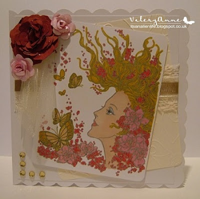 First card using Butterfly/ Vegas Gold / Vintage style and a touch of Vermilion in the flowers in her hair.