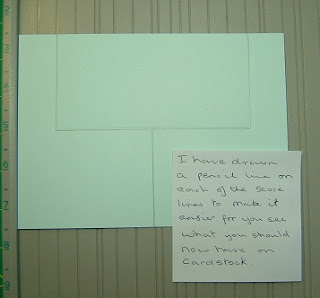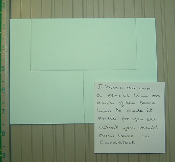 I have drawn a pencil line on each of the score lines to make it easier for you to see what you should now have on the cardstock.