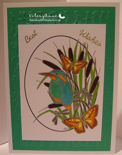 My 1st card uses Emerald/Embossing Folder/Butterfly.