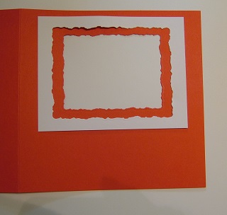 Cut a piece of toning card slightly smaller than your card. i.e. 5.25x5.25. Place inside the card and close the front. Mark with a pencil where the edges of the aperture will be. Now you can simply stamp your image within the marked area. Don't forget to remove the pencil marks.