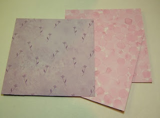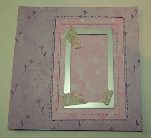 1. Create a cardbase either from a ready made one or card stock. 5.5" x 5.5" and cover the front with design paper of your choice. Here I have rounded the outside edges but this is not necessary to do.